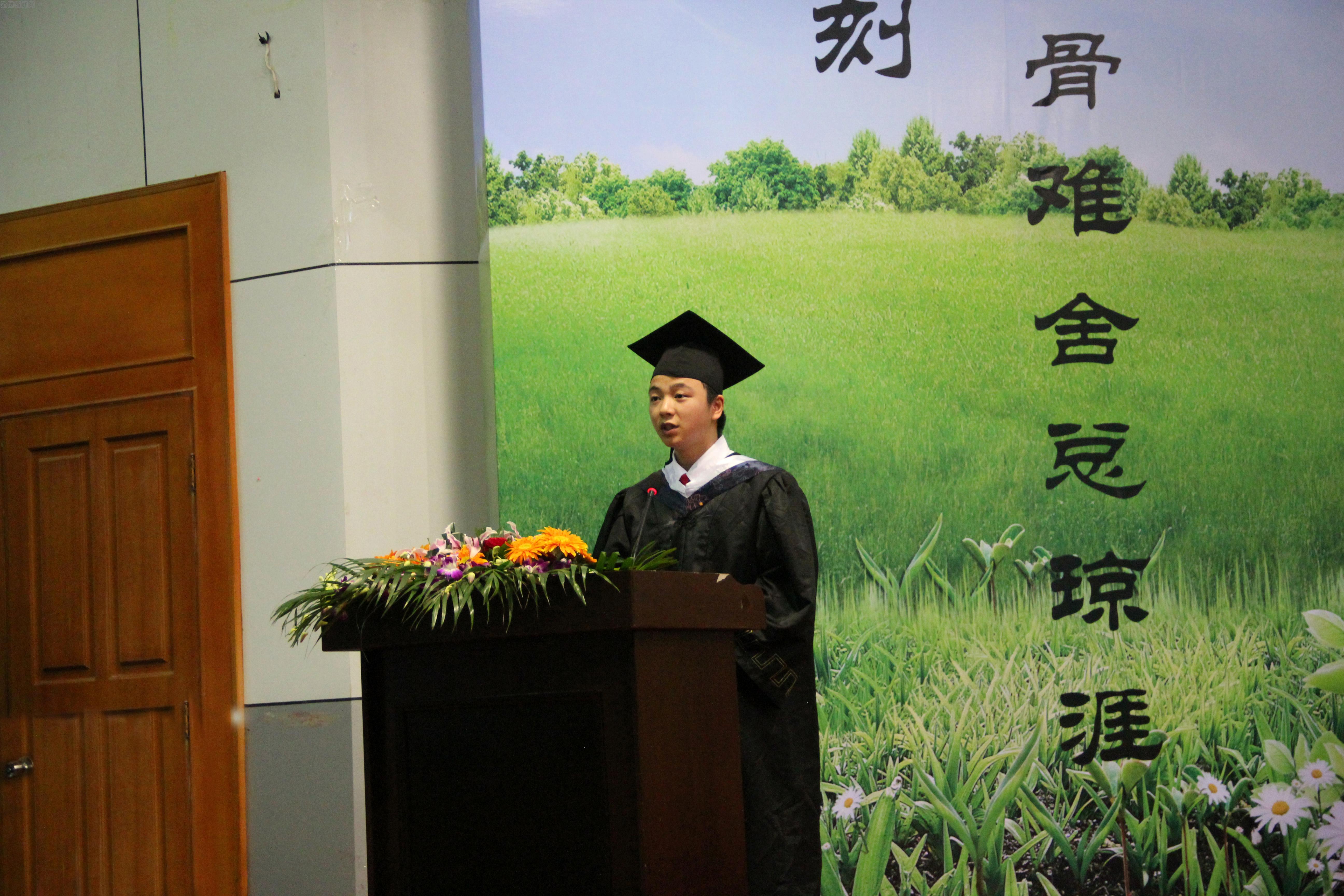 紧接着是优秀毕业生代表08级针灸推拿班的钟诣同学代表全体毕业生发言。他简短而有力的发言,感染了现场的每一个人,他代表全体毕业生郑重承诺:在未来的工作、学习和生活中,一定谨记校训,谨记领导和老师的谆谆教诲,老老实实做人,踏踏实实做事,做有智慧又有激情的人,做有德才又有创新的人,做富有责任又敢挑重担的人!并衷心祝愿母校越来越好,桃李满天下!