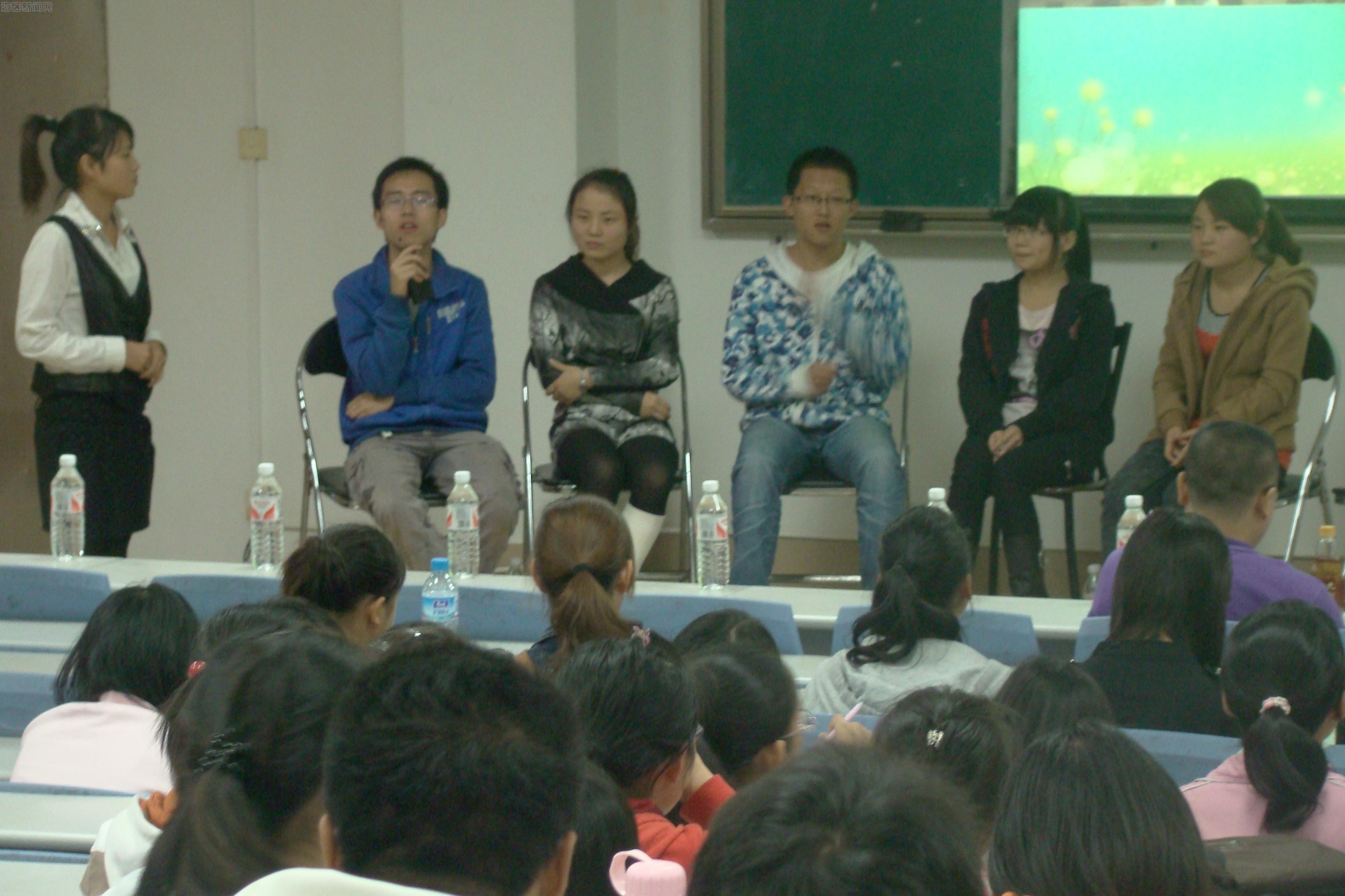 交流会中,05级中西医班硕士研究生蒋伟民、09级中医班柯渠青、09级中西医班马玲、10级中医班王玉喜、10级中医养生班孙培元、10级针推班鲁佳等优秀学生为11级同学分别介绍了自己的学习和生活中应对困难的方法和经验,涵盖了中医、西医和英语等方面。强调了学习态度、学习目的和自制力的重要性。接着是互动提问环节,由11新生们主动地对各自生活与学习中面临的困难与学长学姐交流。此环节同学们积极地说出了自己心中的困难,学长学姐们一一认真倾听并提供了相应的一些解决办法。