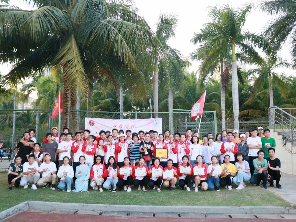 杨旭老师与我院全体运动员及学生会成员合影留念