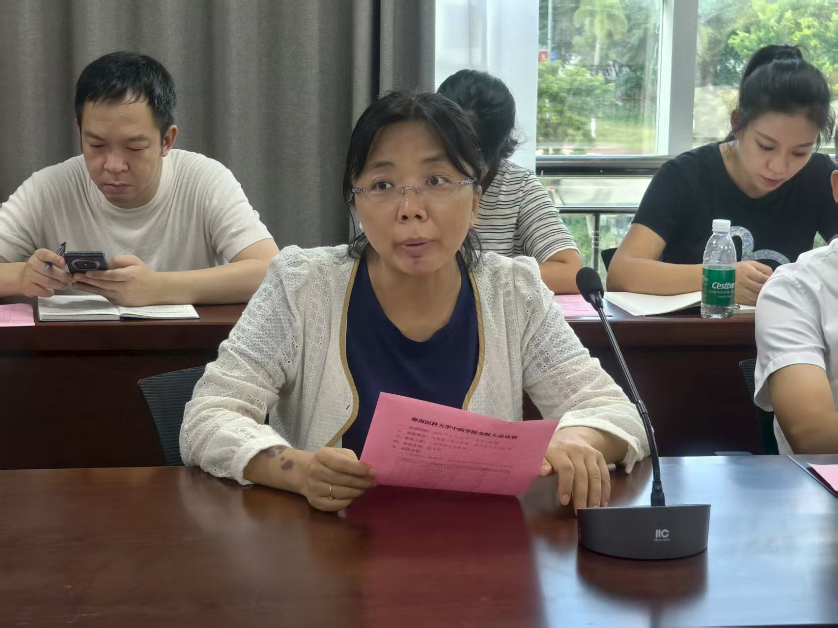 会议伊始,二级教秘、各教研室及实验室负责人依次汇报开学前工作。中医学院二级教秘郭力城汇报了新学期教学工作试讲和预讲、集体备课安排及各教研室需要对补考率高于30%的课程进行深入剖析原因,并为后续教学安排提供了清晰的方向;徐秋玲等教研室主任则对各自教研室开学前准备情况进行了详细汇报。